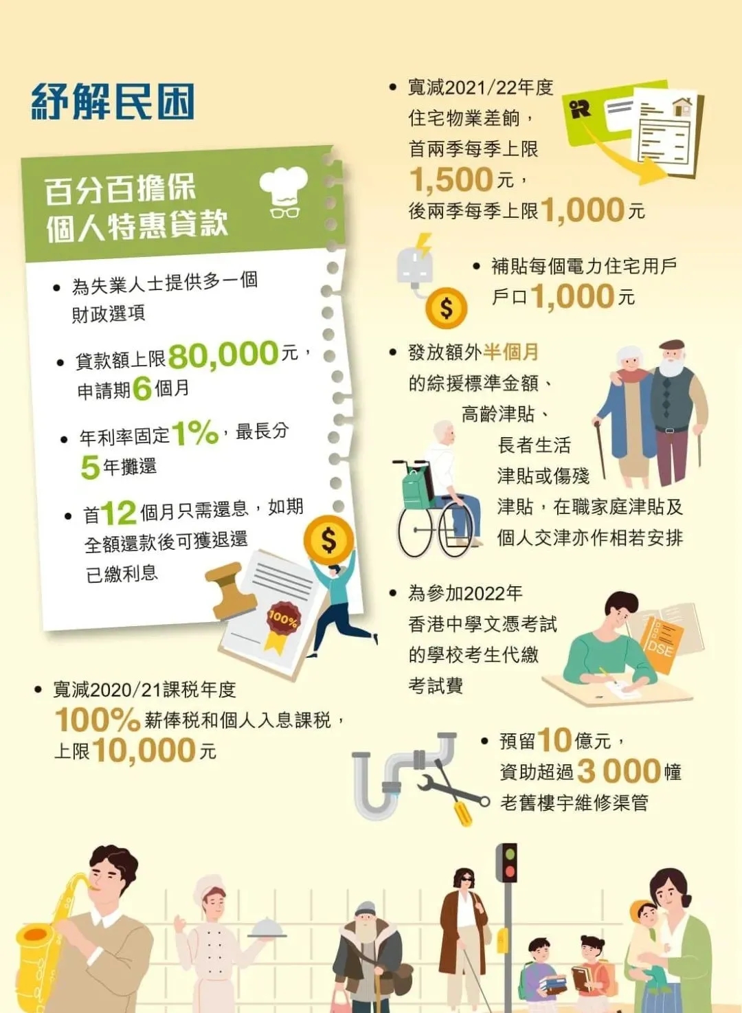 — 寬減2021/22年度住宅物業(yè)差餉,首兩季每季上限1,500元,后兩季每季上限1,000元