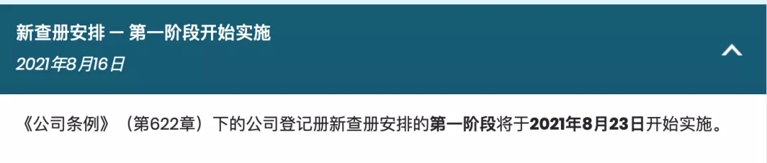 據(jù)香港公司注冊處8月16日消息,《公司條例》(第622章)下的公司登記冊新查冊安排的第一階段將于2021年8月23日開始實施。