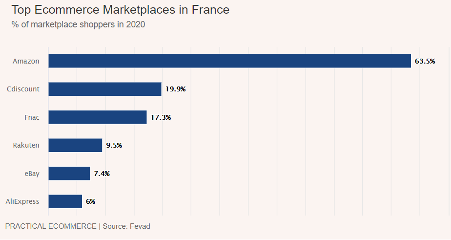 在法國運營的其他外國市場包括eBay,Rakuten和AliExpress。