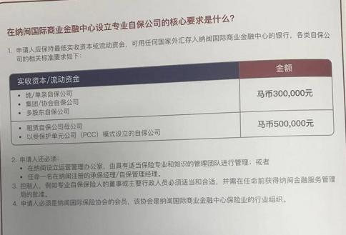 附:納閩國際商業(yè)金融中心設(shè)立專業(yè)自保公司的核心要求: