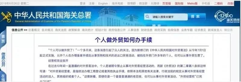 之前中國海關總署就發(fā)過新聞,個人可以做進出口貿(mào)易,如下: